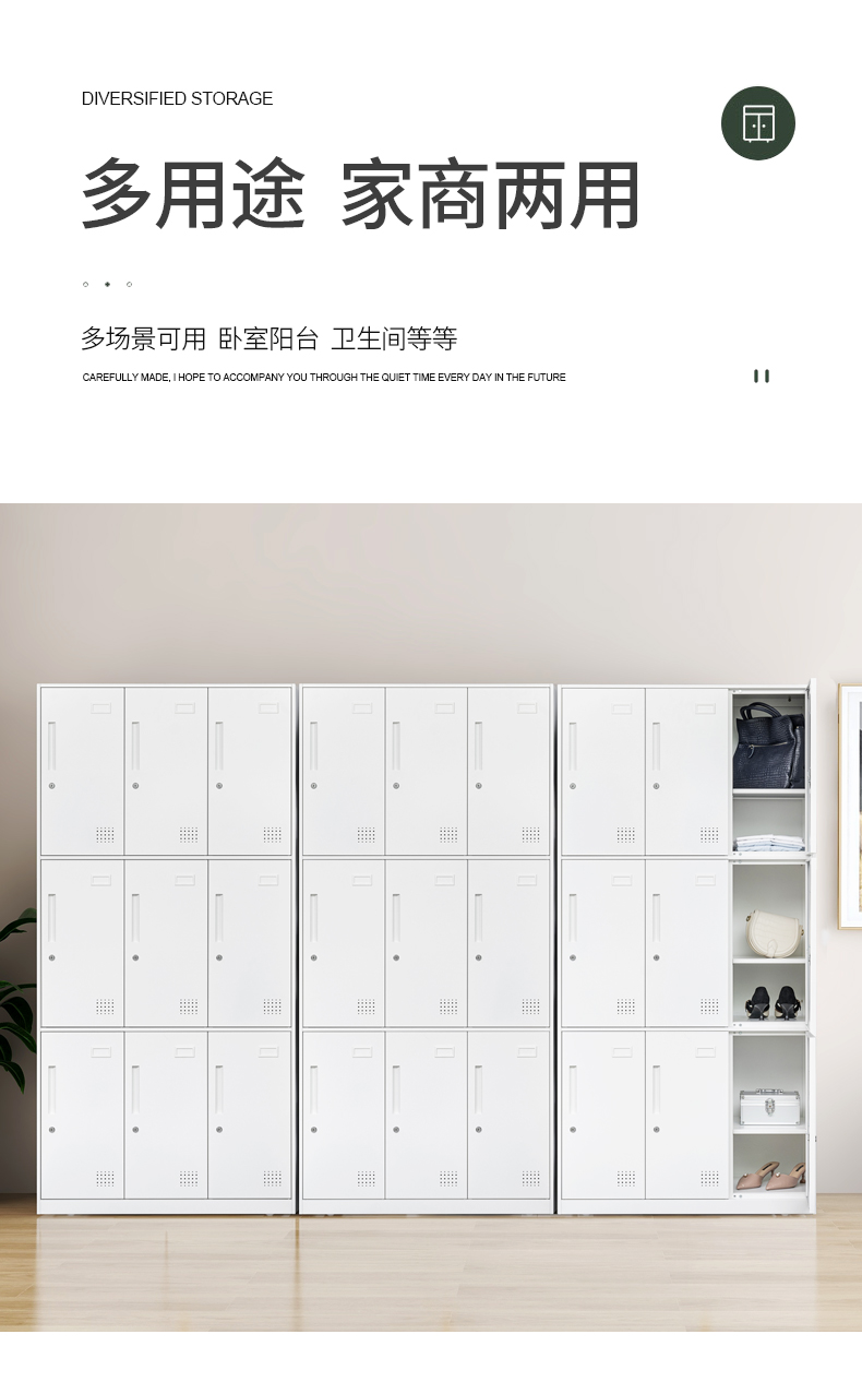 板材厚度0.7mm;內(nèi)上一下一不可調(diào)層板,一掛衣桿,一毛巾鉤,一小鏡;望通阻尼鎖具