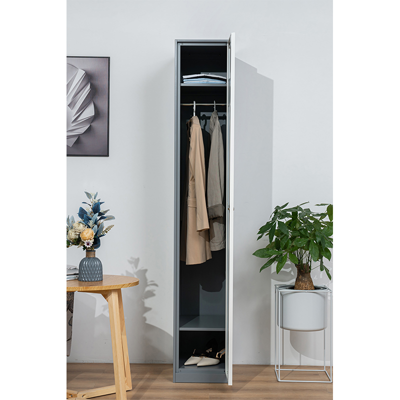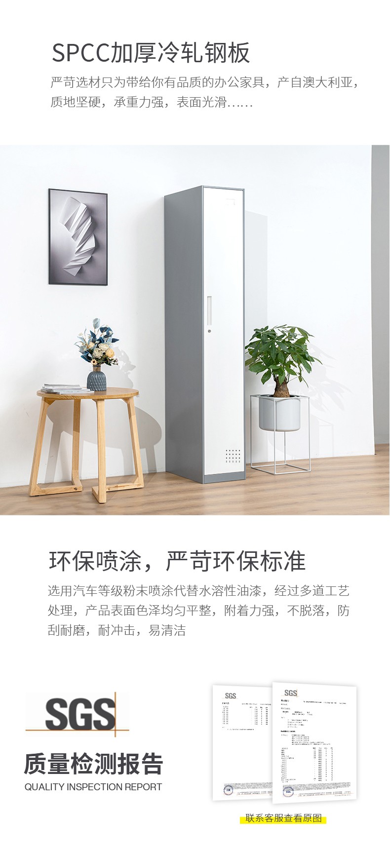 板材厚度0.7mm;內(nèi)上一下一不可調(diào)層板,一掛衣桿,一毛巾鉤,一小鏡;望通阻尼鎖具