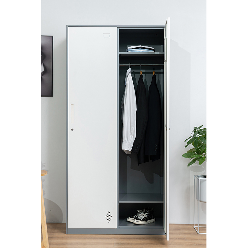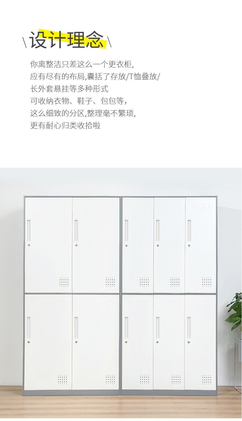 板材厚度0.7mm;每門內上一下一不可調層板,一掛衣桿,一毛巾鉤,一小鏡;望通阻尼鎖具