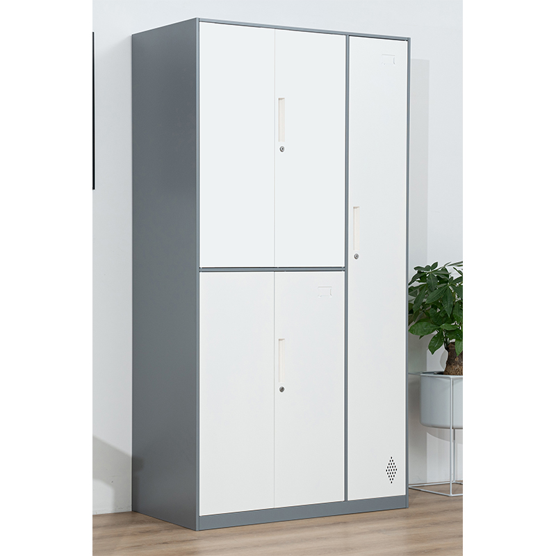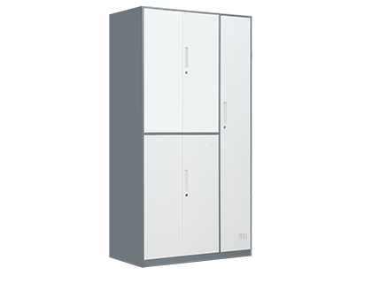 板材厚度0.7mm;左對開內(nèi)上二下一可調(diào)層板;右單門內(nèi)上一下一不可調(diào)層板,一掛衣桿,一毛巾鉤,一小鏡;望通阻尼鎖具