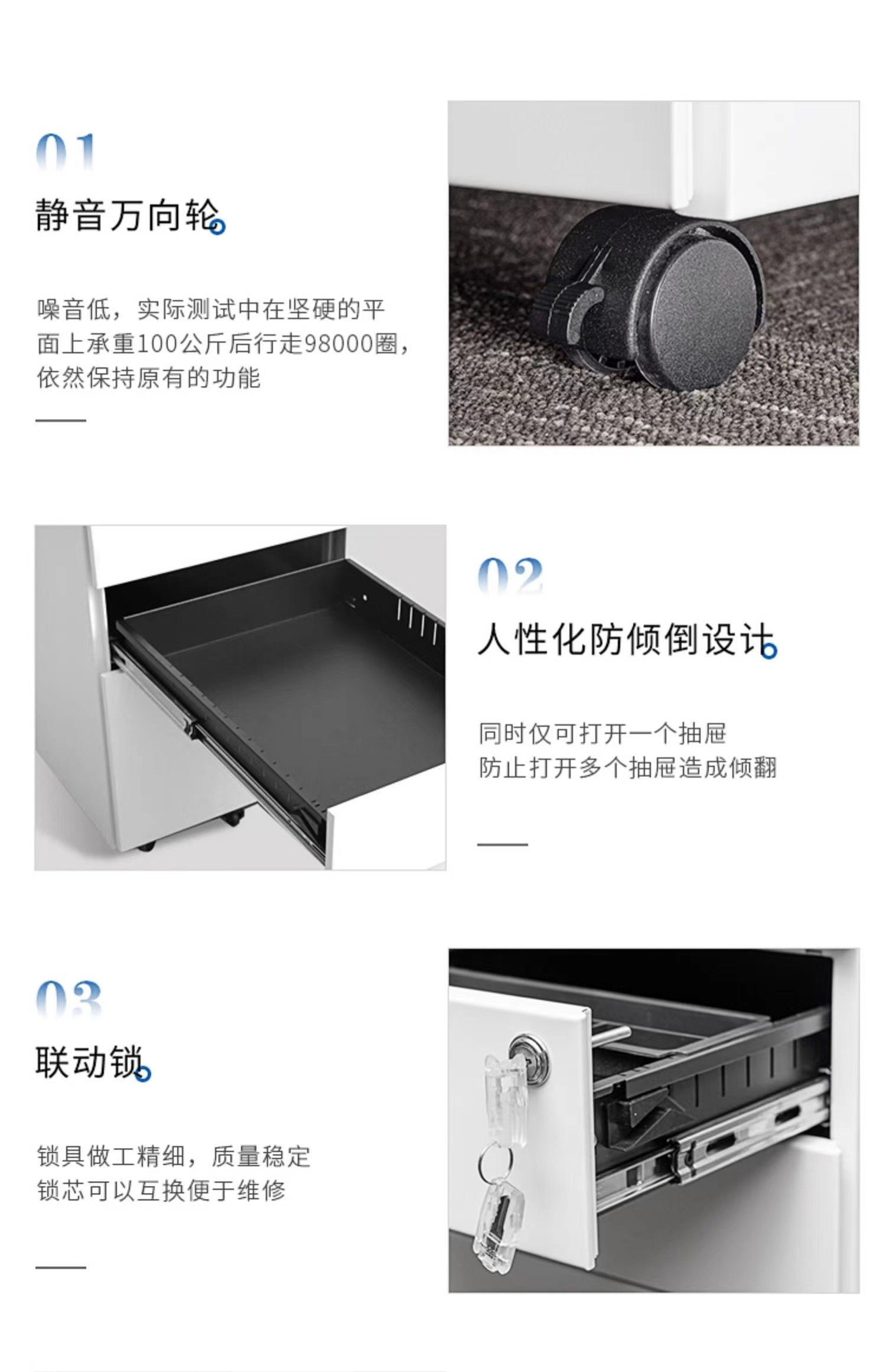 板材厚度0.7mm;三節(jié)滑軌,帶文具盒和文件夾掛架